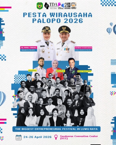 Ia menambahkan, Pesta Wirausaha Palopo 2026 akan menghadirkan pemateri dari tingkat lokal, nasional, hingga internasional yang berpengalaman di bidang bisnis.