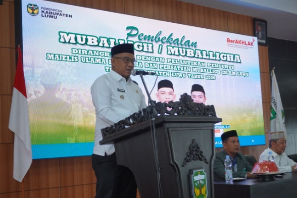 SATUDATA.co.id | Luwu — Pemerintah Kabupaten Luwu menghadiri kegiatan Pembekalan Muballigh/Muballigha yang dirangkaikan dengan pelantikan pengurus Majelis Ulama Indonesia (MUI) dan Persatuan Muballigh Islam Luwu (Persamil) tingkat Kabupaten Luwu di Aula Andi Kambo, Kompleks Perkantoran Bupati Luwu, Kamis (12/2/2026).