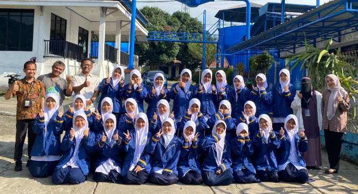 Melalui kunjungan tersebut, para siswi diajak berkeliling meninjau fasilitas pengolahan air serta mendengarkan penjelasan langsung dari tim teknis mengenai tahapan proses, tantangan yang dihadapi di lapangan, hingga langkah-langkah yang ditempuh perusahaan untuk menjaga kualitas dan kontinuitas pasokan air bersih.