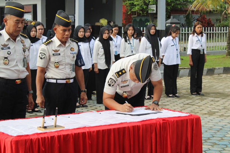 Penandatanganan pakta integritas dirangkaikan dengan apel pagi, yang diawali dengan laporan komandan apel, dilanjutkan dengan menyanyikan Lagu Kebangsaan Indonesia Raya dan Mars Kementerian Imigrasi dan Pemasyarakatan sebagai bentuk penguatan nilai nasionalisme dan pengabdian kepada negara.