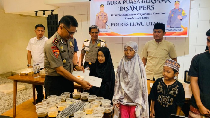 Selain buka puasa bersama, Polres Luwu Utara juga menyerahkan santunan kepada anak-anak yatim sebagai bentuk kepedulian sosial.