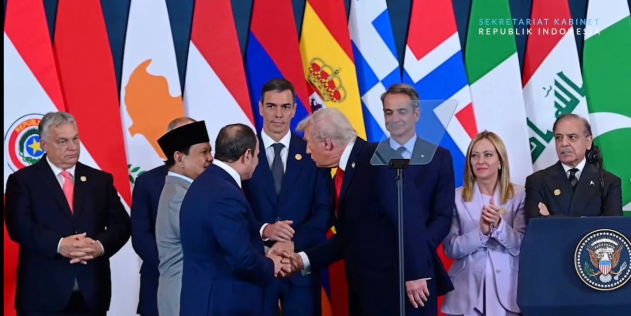 Dari berbagai sumber data, hadirnya Presiden Prabowo menyaksikan langsung penandatanganan dokumen pokok-pokok persetujuan perdamaian dan gencatan senjata di Palestina.