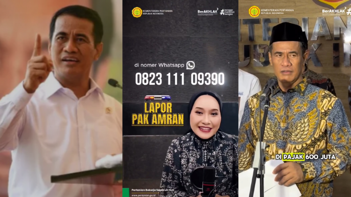 Kolase foto Menteri Pertanian Amran Sulaiman dan Kontak Layanan Pengaduan Masyarakat Lapor Pak Amran. Foto : tangkapan layar video Kementerian Pertanian/int. Minggu 30 November 2025.
