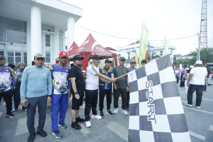 Plh Sekda Palopo Abdul Waris bersama Ketua DPRD Palopo Darwis saat melepas peserta Jalan Sehat dan Senam Bersama di Halaman Belakang Kantor Wali Kota Palopo, Kecamatan Wara, pada Sabtu (29/11/2025). (Ist)