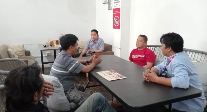 Suasana silaturahmi antara pengurus SMSI Kota Palopo dan Ketua PHRI Kota Palopo, Ery, di Eltris Café, Jalan Ahmad Razak, Selasa 21/10/2025. Foto : SMSI Palopo