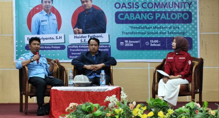 SATUDATA.co.id | Palopo — Komunitas OASIS Cabang Palopo resmi diperkenalkan kepada publik melalui kegiatan seminar dan soft launching bertema “Pendidikan Modern di Era Transformasi Sosial dan Teknologi” yang digelar di Gedung Saokotae, Kelurahan Pattene, Kecamatan Wara Bara, Kota Palopo, Minggu (18/01/2026) sekitar pukul 13.30 WITA.