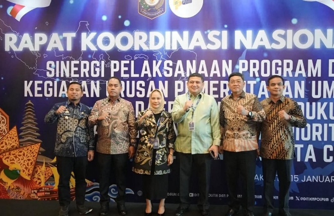 Rakornas tersebut diselenggarakan oleh pemerintah pusat sebagai upaya memperkuat tata kelola pemerintahan serta menyelaraskan kebijakan antara pemerintah pusat dan pemerintah daerah, khususnya dalam pelaksanaan urusan pemerintahan umum di daerah, di Hotel Pullman Jakarta Central Park, Kamis (15/1/2026).