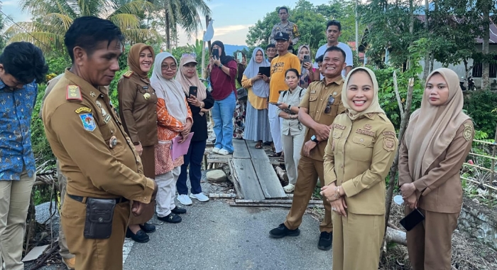 Wali Kota Palopo, Hj. Naili Trisal, bersama anggota DPRD Kota Palopo Fraksi Demokrat Bata Manurun dan sejumlah pimpinan OPD, meninjau jembatan penghubung antara Kelurahan Batu Walenrang dan Kelurahan Mancani, Senin 13/10/2025. Foto : Pemkot Palopo